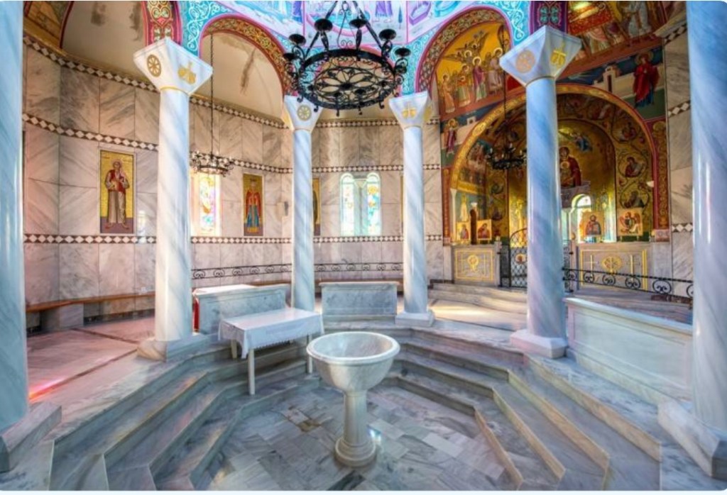 Holy Baptistery of Saint Lydia of Philippi – In the Book of Acts (16:11-15) the Apostle Paul baptizes Lydia after her conversion. She is the first Christian to be baptized in Europe. The Baptistery has amazingly beautiful mosaics on the walls and arches, depicting scenes from the life of the Apostle Paul. Even today, many are baptized here. It is situated on the bank of the Zigaktis River, and it is a very calm and peaceful place.